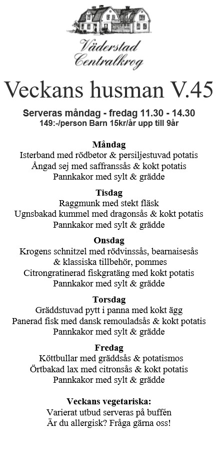 På Väderstad Centralkrog serverar vi hemlagad mat från grunden och med mycket kärlek. Här vill vi att våra gäster ska trivas och känna sig som hemma samtidigt som man avnjuter vår goda mat.